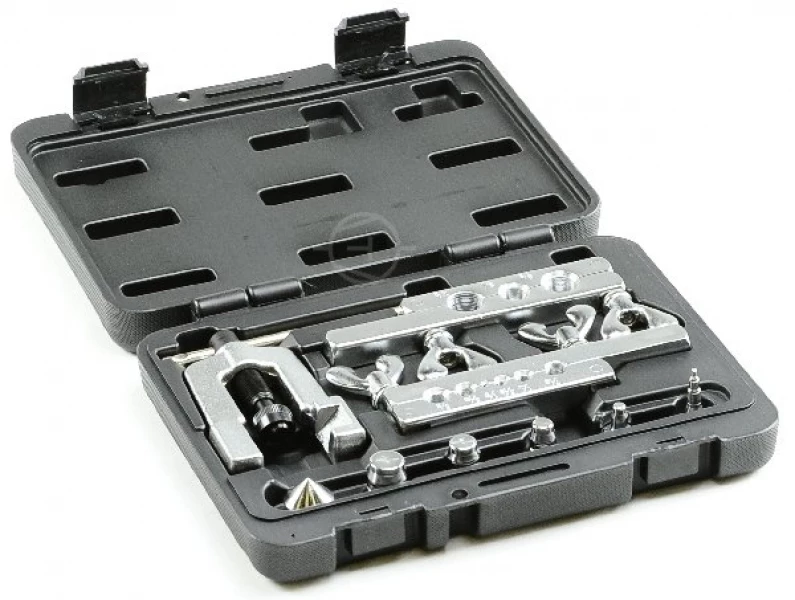 Разбортовка BC-275 Premium дюймовые зажимные колодки для размеров 1/8", 3/16", 1/4", 5/16", 3/8", 7/16", 1/2", 5/8", 3/4". Четыре насадки для расширения труб с диаметром 5/16", 1/2", 5/8", 3/4", и одна универсальная 3/16",1/4",3/8". Набор поставляется в пластиковом кейсе