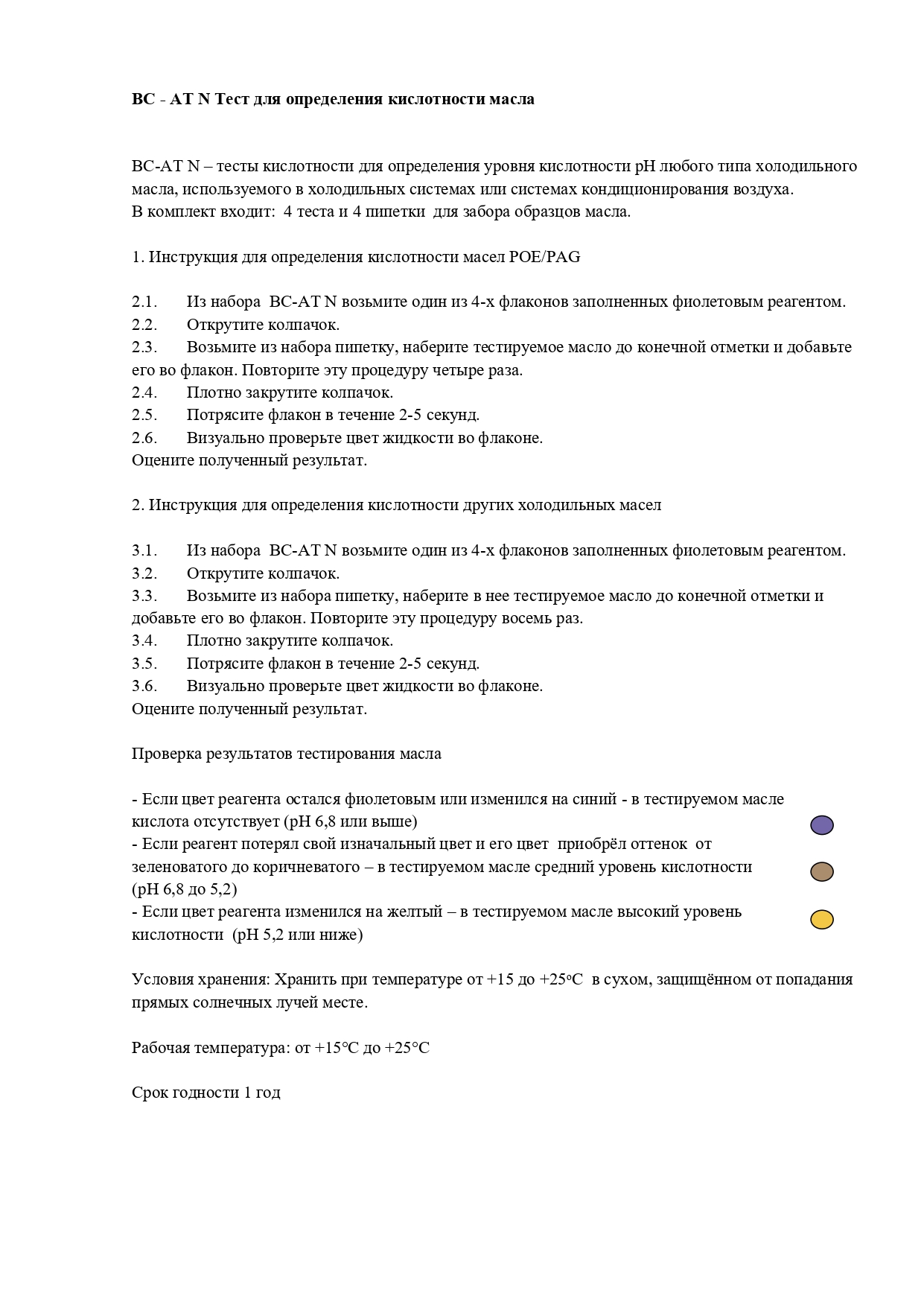 BC-AT N – тест для определения уровня кислотности pH любого типа холодильного масла, используемого в холодильных системах или системах кондиционирования воздуха.